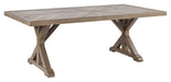 Sporting an easy-on-the-eyes look inspired by driftwood, this dining table elevates the art of alfresco living. Beautiful and durable enough for indoor and outdoor use, the high-style/low maintenance table charms with X-leg farmhouse styling, while its thick porcelain tabletop adds a natural complement.
