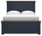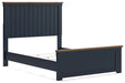 Details B414B3: Includes panel headboard, footboard, rails and slats, Made with hardwood solids, mindi wood veneer and MDF substrates, Two-tone finish features a dark slate blue with a light brown wood-tone top, Foundation/box spring required, sold separately, Mattress available, sold separately, Assembly required, B414B1: Includes dresser and mirror, Made with hardwood solids, mindi wood veneer and MDF substrates, Two-tone finish features a dark slate blue with light brown wood-tone top, Nickel-tone metal knobs, 6 drawers with fully finished interior, dovetail construction and heavy duty ball-bearing side glides, Mirror attaches to back of dresser, B414-45: Made with hardwood solids, mindi wood veneer and MDF substrates, Two-tone finish features a dark slate blue with a light brown wood-tone top, Nickel-tone metal knobs, 4 drawers with fully finished interior, dovetail construction and heavy duty ball-bearing side glides,