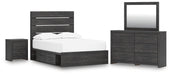 Hollivern Full Panel Bed with Storage with Mirrored Dresser and Nightstand