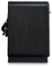 Details B821B4: Includes upholstered panel headboard, footboard and rails , Made with hardwood solids and ash veneer, Black finish on textured wood grain surface , Waterfall edges, Polyester upholstery, Foundation/box spring required, sold separately, Mattress available, sold separately, Assembly required, B821B1: Includes dresser and mirror, Made with hardwood solids and ash veneer, Black finish on textured wood grain surface , Burnished nickel-tone pulls, Waterfall edges, 7 smooth-gliding drawers with fully finished interior, dovetail construction and heavy duty ball-bearing side glides, Mirror attaches to back of dresser, B821-91: Made with hardwood solids and ash veneer, Black finish on textured wood grain surface, Brushed nickel-tone pulls, Waterfall edges, Smooth-gliding drawer with fully finished interior, dovetail construction and heavy duty ball-bearing side glides, Lower cubby shelf with built-in LED nightlight, 110V power supply with USB-A and USB-C charging ports, Power cord included; UL Listed,