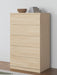 Create the modern bedroom of your dreams. This chest of drawers offers a minimal design with maximum style, combining ultra-clean lines and a relaxed natural finish with a hardware-less aesthetic. Spacious drawers with ball-bearing glides make putting things away a snap.