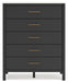 Details B2616-81: Made with durable engineered wood frame and solid wood blocking, Polyester upholstery, Bed does not require additional foundation/box spring; accommodates most zero clearance adjustable bases, Mattress available, sold separately, Assembly required, B2616B1: Includes dresser and mirror, Made with engineered wood (MDF/particleboard/plywood) and decorative laminate for the right balance of affordability and durability, Matte black finish with subtle replicated wood grain, Replicated white marble top, Decorative laminate replicates natural or man-made material surfaces with consistent color, pattern and texture , Handles with light bronze-tone finish, 6 smooth-gliding drawers , Drawer interiors are lined with a faux linen laminate for a clean, finished look, Mirror attaches to back of dresser; can also be mounted on wall horizontally or vertically, Safety is a top priority, clothing storage units are designed to meet the most current standard for stability, ASTM F 2057 (ASTM International), Drawers extend out to accommodate maximum access to drawer interior while maintaining safety, Minor assembly required, B2616-345: Made with engineered wood (MDF/particleboard/plywood) and decorative laminate for the right balance of affordability and durability, Matte black finish with subtle replicated wood grain, Replicated white marble top, Decorative laminate replicates natural or man-made material surfaces with consistent color, pattern and texture, Handles with light bronze-tone finish, 5 smooth-gliding drawers, Drawer interiors are lined with a faux linen laminate for a clean, finished look, Safety is a top priority, clothing storage units are designed to meet the most current standard for stability, ASTM F 2057 (ASTM International), Drawers extend out to accommodate maximum access to drawer interior while maintaining safety, Minor assembly required,
