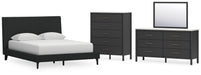 Cadmori Queen Upholstered Bed with Mirrored Dresser and Chest