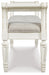 Details | Tufted seat with foam cushion, Made of polyester, Wood frame, Antiqued white finish | |
