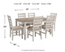 Details | Includes rectangular table and 6 chairs, Made of solid wood, engineered wood and acacia veneers, Two-tone finish, Seats up to 6, Assembly required | |