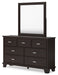 | Details | B441B2: Includes panel headboard, footboard, rails and slats, Made with hardwood solids, engineered wood veneer and MDF substrates, Dark brown finish, Floating panel headboard, Picture frame footboard, Foundation/box spring required, sold separately , Mattress available, sold separately, Assembly required, B441B1: Includes dresser and mirror, Made with hardwood solids, engineered wood veneer and MDF substrates, Dark brown finish, Metal bar pulls with bright nickel-tone finish, 7 smooth-gliding drawers with dovetail construction and metal center guides, Drawer interiors are lined with a wood grain laminate for a clean, finished look, Top moulding on dresser, Mirror attaches to back of dresser, B441-92: Made with hardwood solids, engineered wood veneer and MDF substrates, Dark brown finish, Metal bar pulls with bright nickel-tone finish, 2 smooth-gliding drawers with dovetail construction and metal center guides, Drawer interiors are lined with a wood grain laminate for a clean, finished look, Top moulding, | |