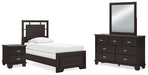 Covetown Twin Panel Bed with Mirrored Dresser and Nightstand