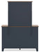 | Details | B414-53: Made with hardwood solids, mindi wood veneer and MDF substrates, Two-tone finish features a dark slate blue with a light brown wood-tone top, ¼" bolts (not included) are needed to attach headboard to your existing bed frame, Assembly required, B414B1: Includes dresser and mirror, Made with hardwood solids, mindi wood veneer and MDF substrates, Two-tone finish features a dark slate blue with light brown wood-tone top, Nickel-tone metal knobs, 6 drawers with fully finished interior, dovetail construction and heavy duty ball-bearing side glides, Mirror attaches to back of dresser, B414-45: Made with hardwood solids, mindi wood veneer and MDF substrates, Two-tone finish features a dark slate blue with a light brown wood-tone top, Nickel-tone metal knobs, 4 drawers with fully finished interior, dovetail construction and heavy duty ball-bearing side glides, | |